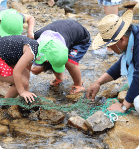 「子供は村の宝」と、村の人たちはどこの子どもにも温かい眼差しを注いでくださいます。幼少期に温かい眼差しをたくさん浴びて育つことが、大人になってエネルギーになり、へこたれないしなやかさを生み出します。あふれる豊かな自然と温かい人との関わりの中で、主体的な遊びを通して、小さな失敗や成功をたくさん体験しながら育つことができます。