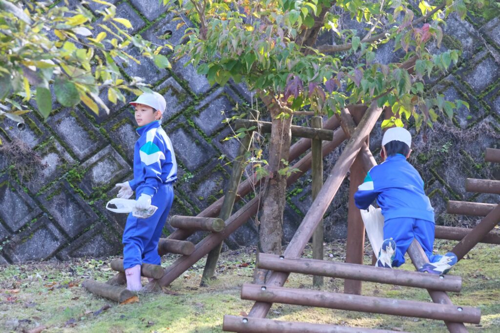 公園の奥まで進むと大小様々な形のどんぐりが落ちていました。「あっちに大きなどんぐりがあったよ」「カラフルな落ち葉も見つけた!」と、子どもたちは秋ならではのものをたくさん見つけることができました。