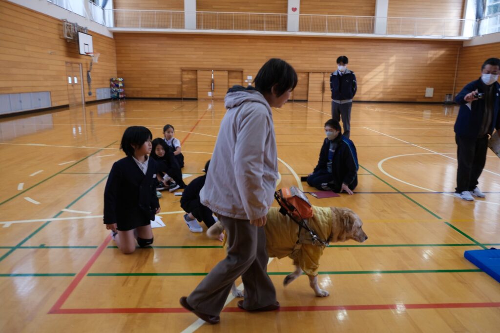 西粟倉小学校4年生では毎年福祉体験を行なっています。前回、社会福祉協議会の中野洋子さんにお越しいただき、「福祉」について学んだ子どもたち。今回は、視覚障がい者で盲導犬と暮らしている鈴木鈴子さんにお越しいただき、実際の目の見えない方のお話を伺いました。
