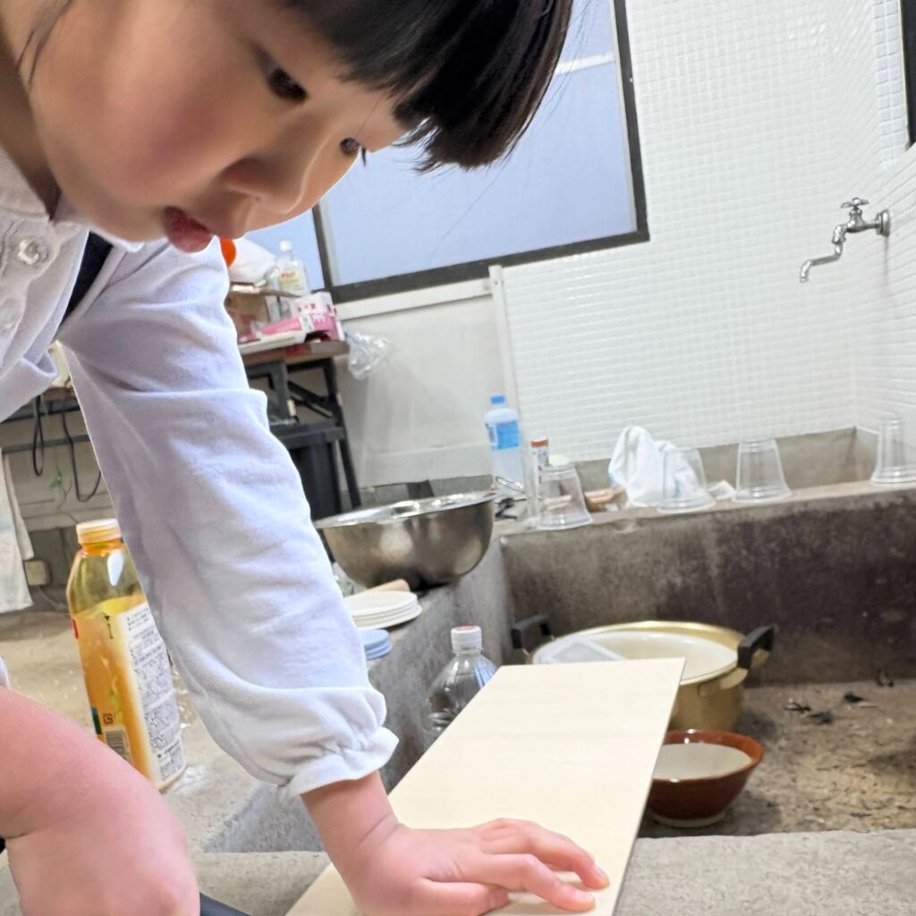 最初は、「一緒に持っててね・・。これで切れてる・・?」と不安そうに糸鋸を動かしていましたが、1つ板を切れたら自信がついたのか、「もう一枚切る?」と聞くと「全部切れそう!」とたくさん切ることができました。